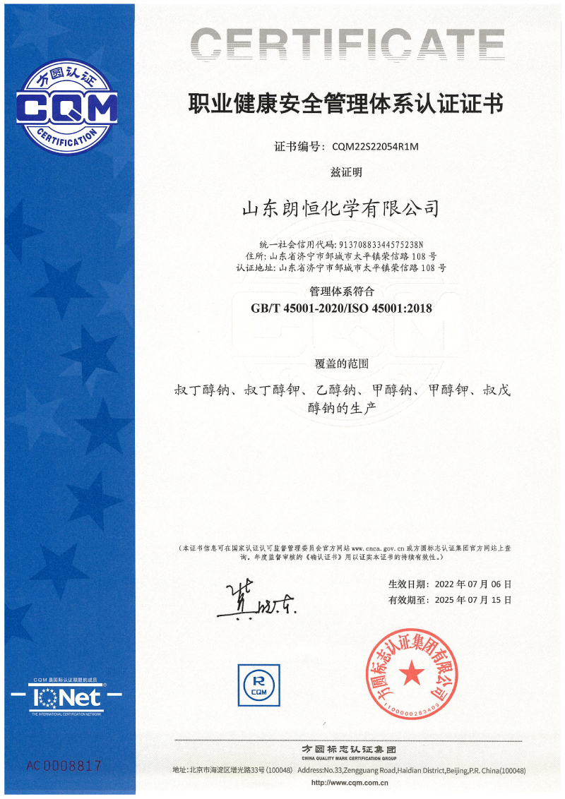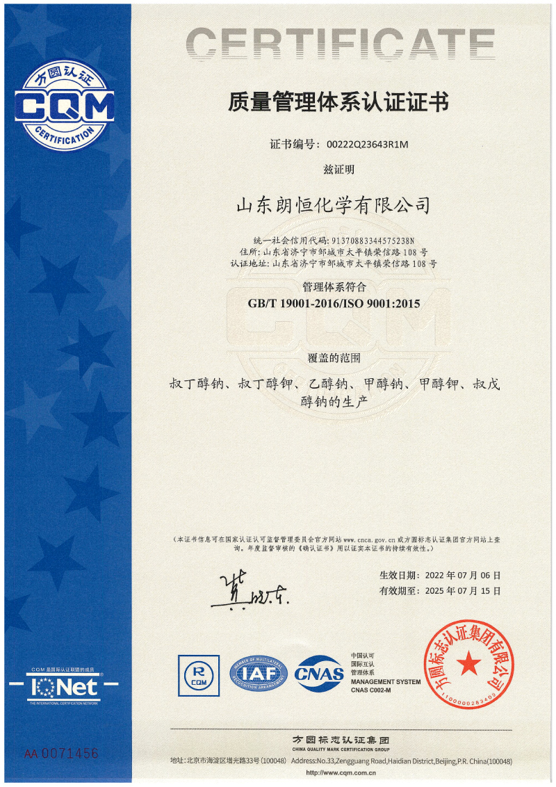 甲醇鉀REACH認證