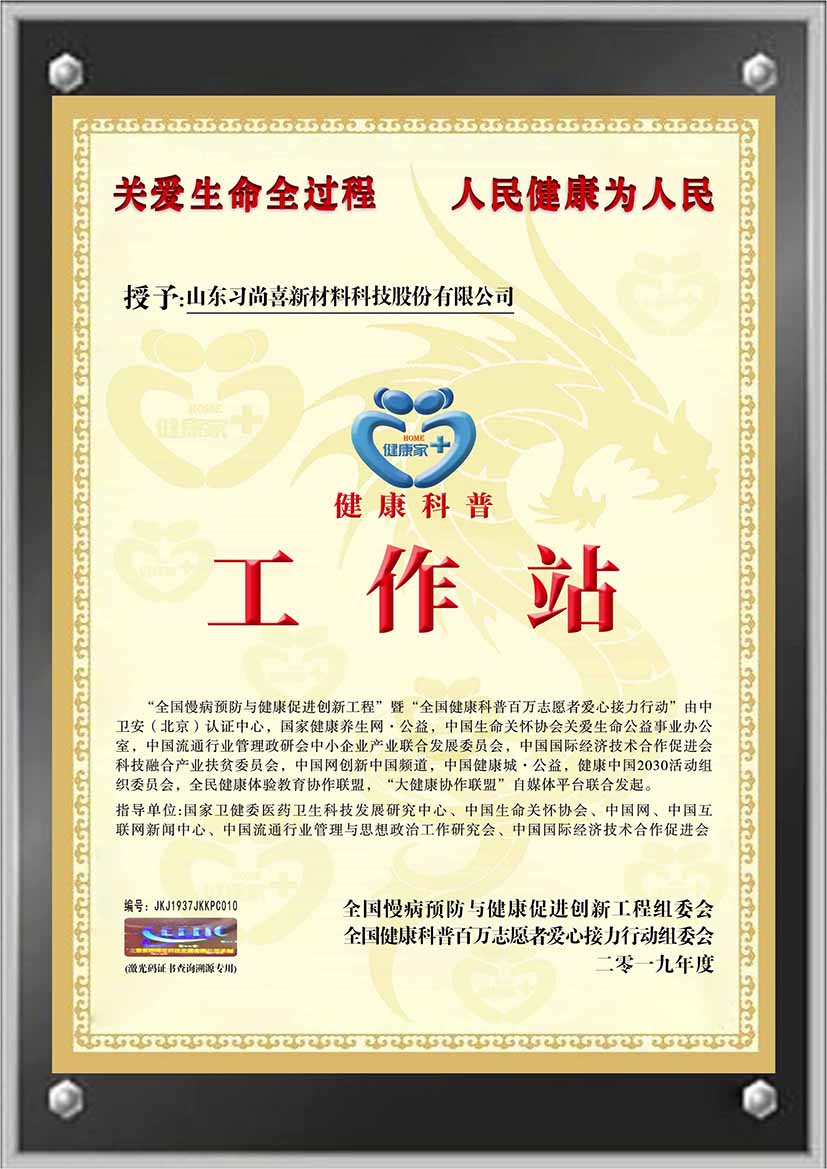 關(guān)愛(ài)生命全過(guò)程 人民健康為人民. 山東習(xí)尚喜新材料科技股份有限公司在2019年度全國(guó)健康科普百萬(wàn)志愿者愛(ài)心接力活動(dòng)中