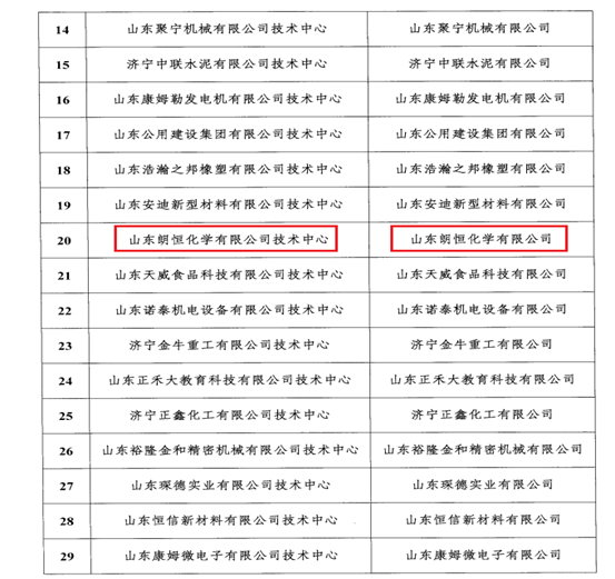 近日,根據(jù)《山東省企業(yè)技術(shù)中心認(rèn)定管理辦法》(2021年修訂)(魯發(fā)改高技〔2021〕428號(hào))和《關(guān)于組織申報(bào)2023年濟(jì)寧市企業(yè)技術(shù)中心的通知》有關(guān)規(guī)定,經(jīng)在線初審、信用核查、專家評(píng)審等環(huán)節(jié),濟(jì)寧市發(fā)改委公布了濟(jì)寧市2023年第二十二批新認(rèn)定市級(jí)企業(yè)技術(shù)中心名單,山東朗恒化學(xué)有限公司被認(rèn)定為濟(jì)寧市“市級(jí)企業(yè)技術(shù)中心”。